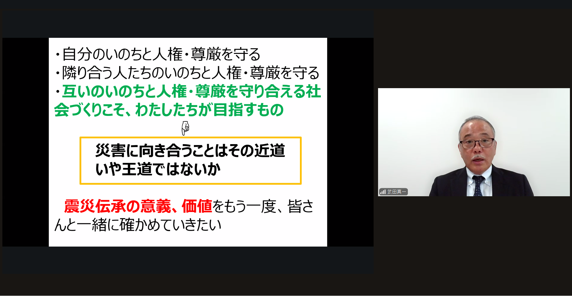 震災伝承と防災・減災活動の啓発に取り組む武田様よりご講義いただきました。