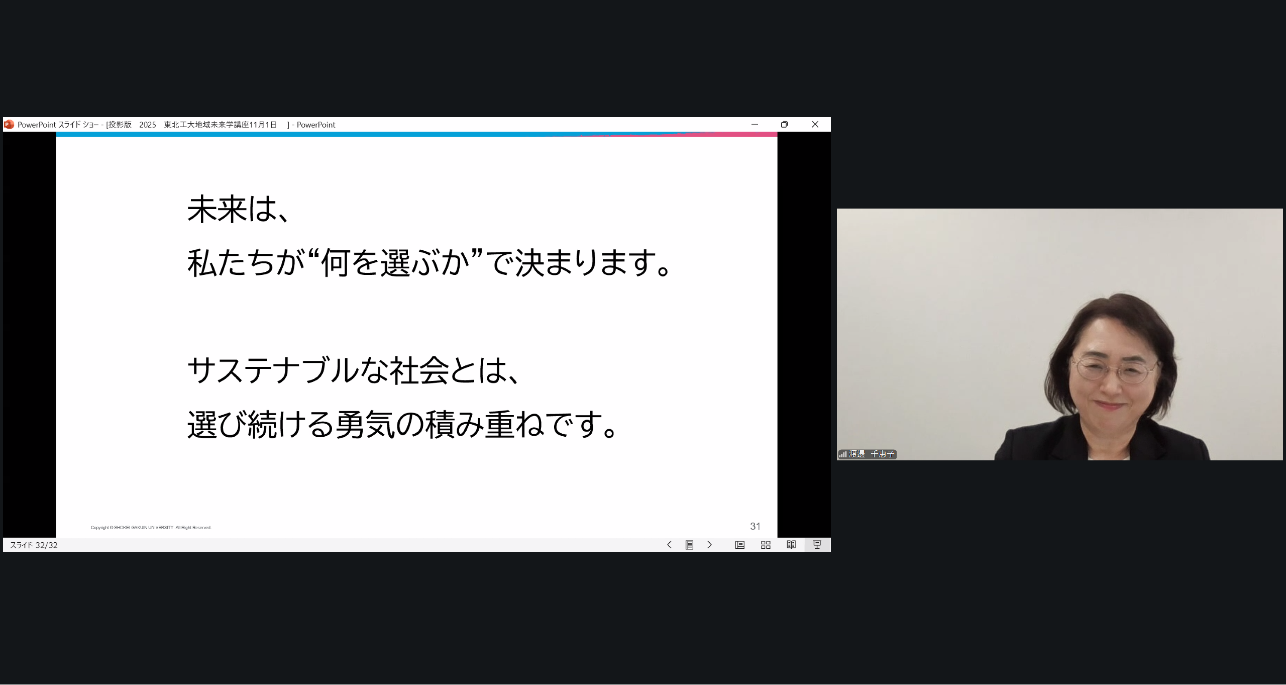 私たちの選択が社会を変え、持続可能な未来をデザインしていく存在であると感じました。